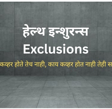 या ब्लॉगमध्ये आपण पाहूया आरोग्य विमा पॉलिसीत कोणते रोग, उपचार व परिस्थिती क्लेममध्ये समाविष्ट होत नाहीत, म्हणजेच "Exclusions" कोणते असतात.
